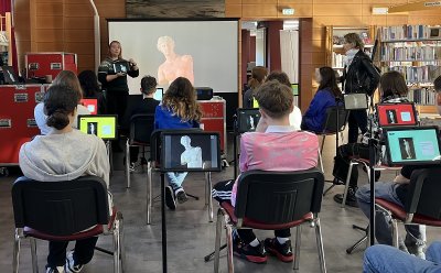 Les élèves, accueillis à la bibliothèque de Vineuil, ont participé à une mini conférence sur un thème choisi par leurs professeurs et présenté avec pédagogie et passion par Mme Florine Albert, Médiatrice culturelle Micro-Folie. Les demi-groupes se sont succédés, découvrant la bibliothèque en y effectuant des recherches et assistant à l’atelier en question.